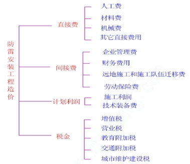 防雷安装工程造价由直接费用、间接费用、计划利润、税金等四大部分组成。
