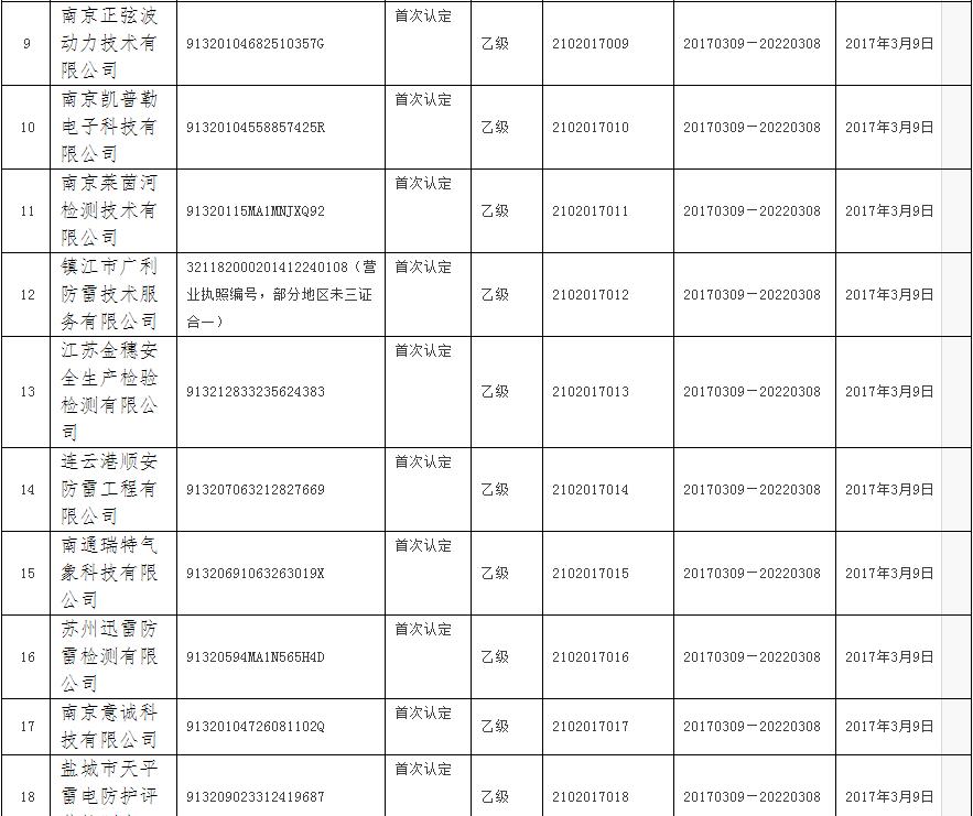 南通防雷检测---江苏省雷电防护装置检测资质单位公示